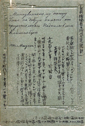 深ク感謝スル中佐クリーゲンベルク、ノ紀念トシテ